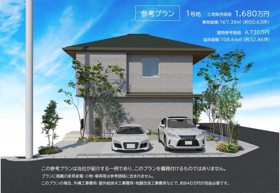 1号地に注文住宅を建てた場合の参考プラン※建売ではありません