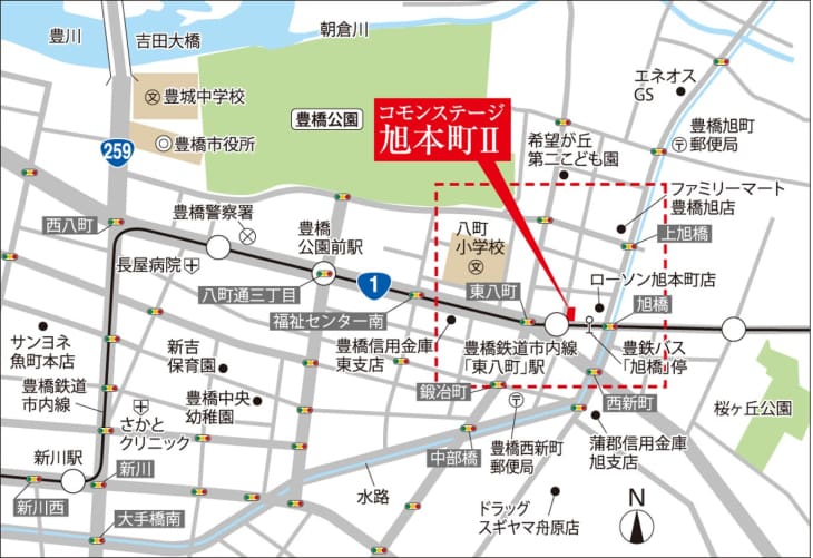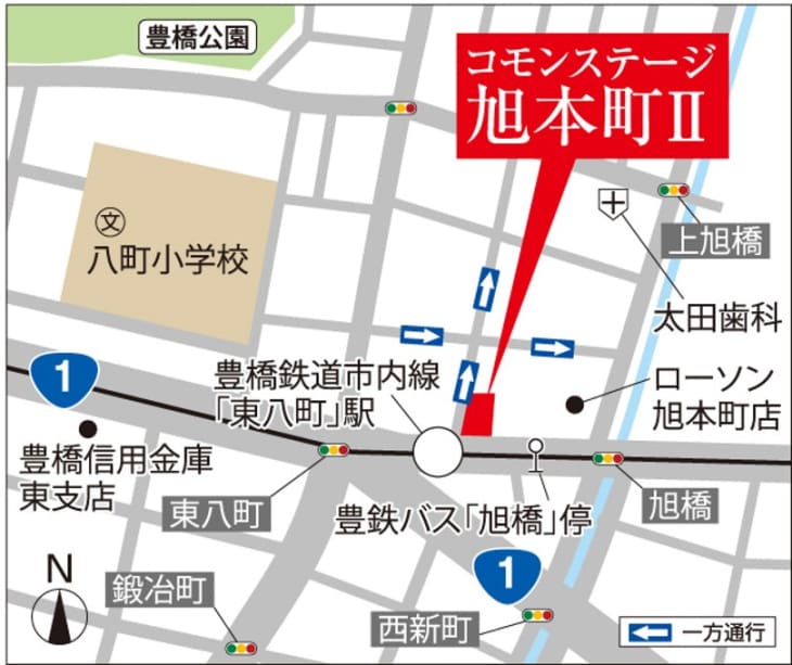 日本語と英語で学ぶ「イマージョン教育」を全国最初に取り入れた八町小学校(HPより)へ徒歩4分。豊橋鉄道市内線「東八町駅」へ徒歩1分で交通利便性も優れている分譲地です。