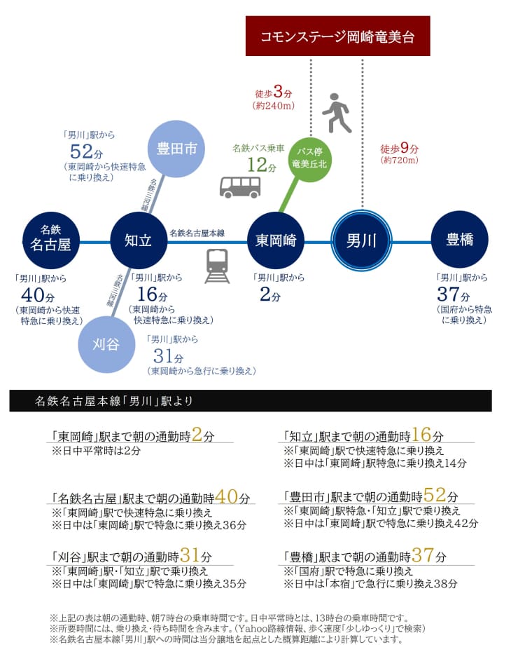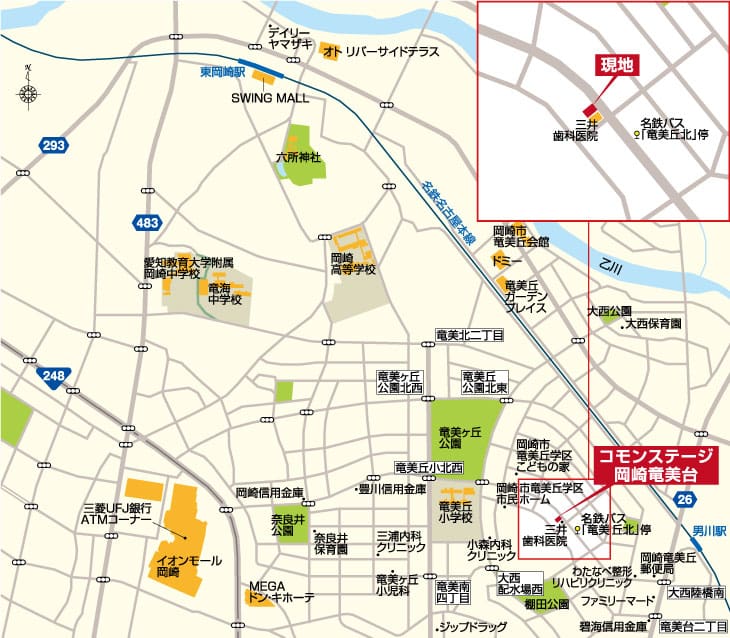 岡崎竜美エリアは、電車も車もアクセス良好。
