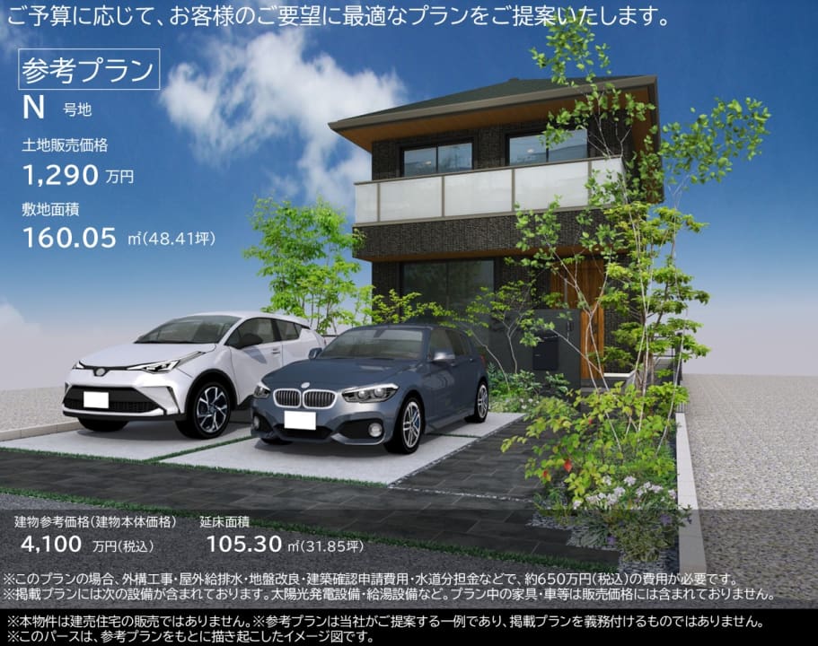 ※N号地にて注文住宅を建てた場合の参考プランです。
