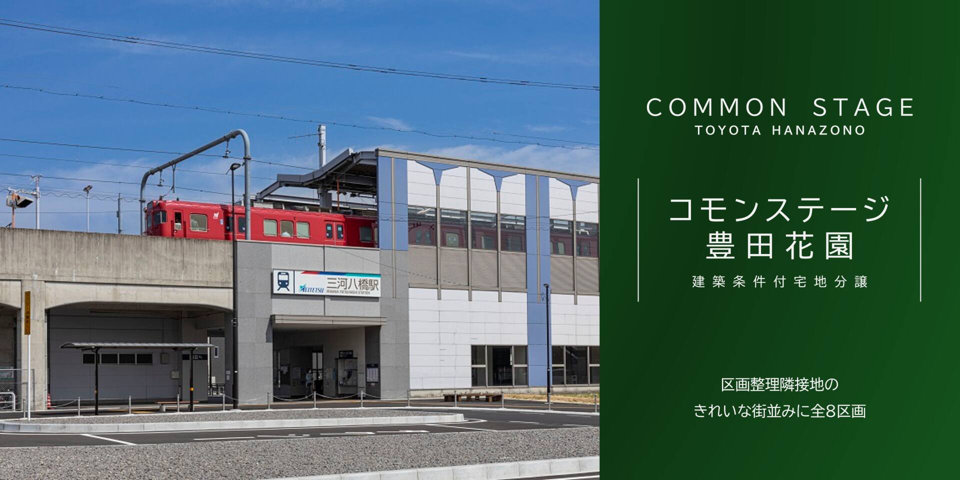 ■最寄りの名鉄三河線「三河八橋」駅は、名鉄名古屋本線「知立」駅まで2駅7分。区画整理隣接地のきれいな街並みに全8区画。
