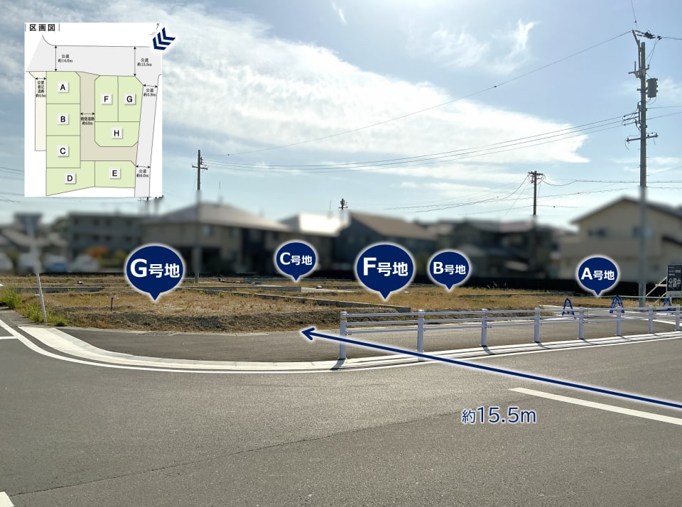 この区画整理地は、将来にわたり美しい街並みが保たれるよう設計されています。広々とした道路とゆとりのある区画は、開放感あふれる住まいづくりに最適です。ぜひ、現地でこの土地の持つ可能性を体感してください。