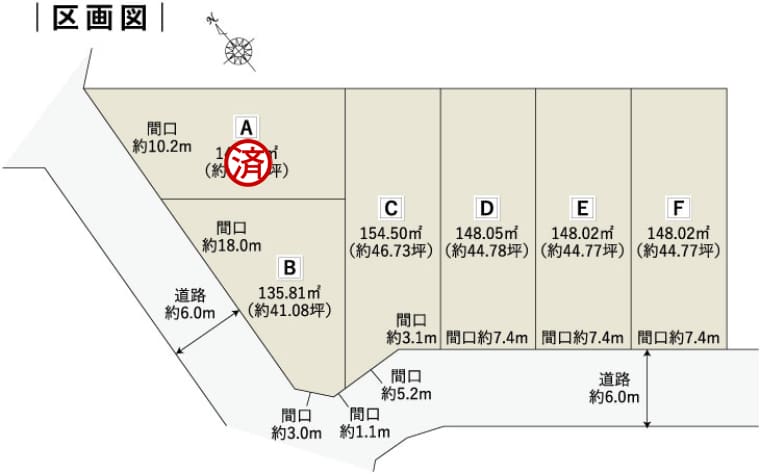 ※現地から味岡駅までの距離表示はA号地とF号地を起点としています。B号地とF号地を起点にした場合は徒歩10分~11分(約760m~約810m)となります。
