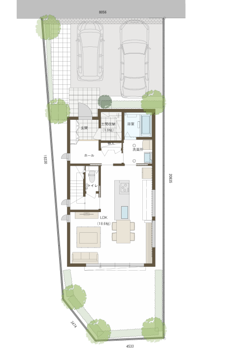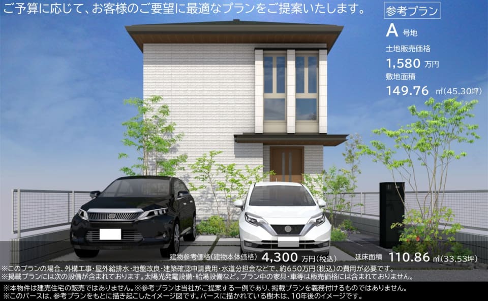 ※A号地にて注文住宅を建てた場合の参考プランです。