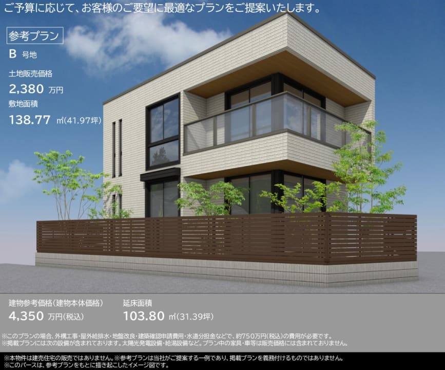 ※B号地にて注文住宅を建てた場合の参考プランです。
