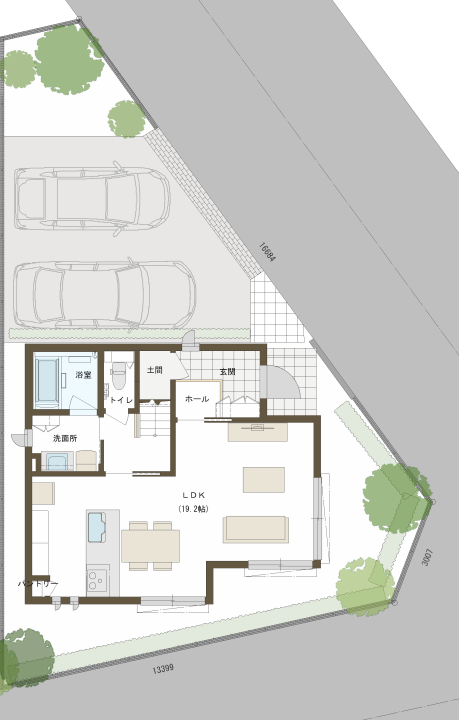 B号地 参考プラン:外構付1階PLAN