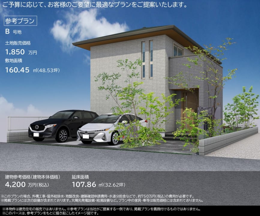 ※B号地にて注文住宅を建てた場合の参考プランです。