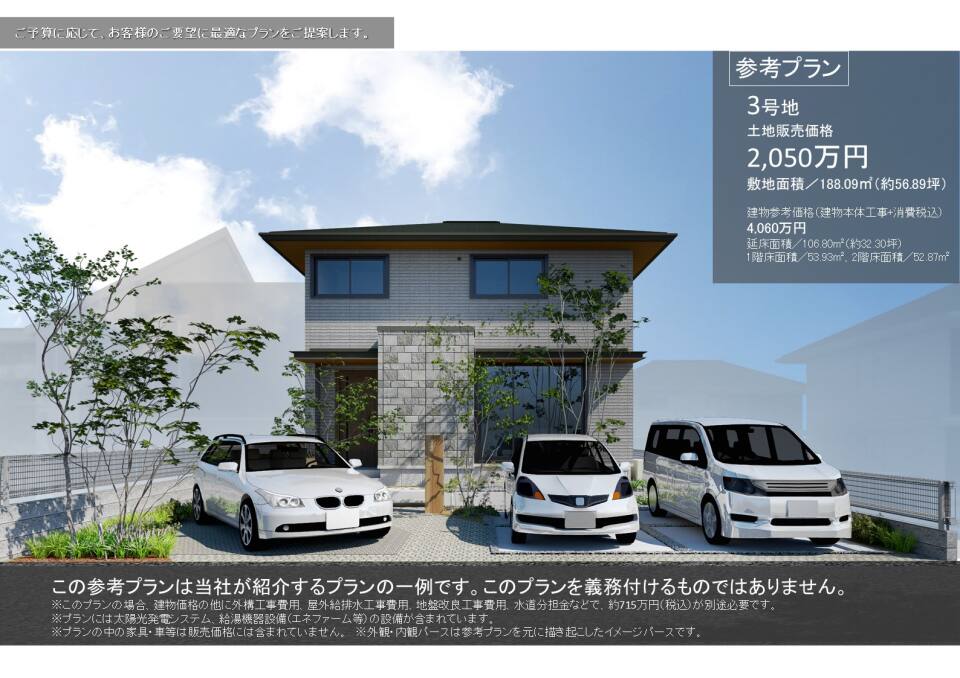 3号地にて注文住宅を建てた場合の参考プランです。※建売の販売ではありません。