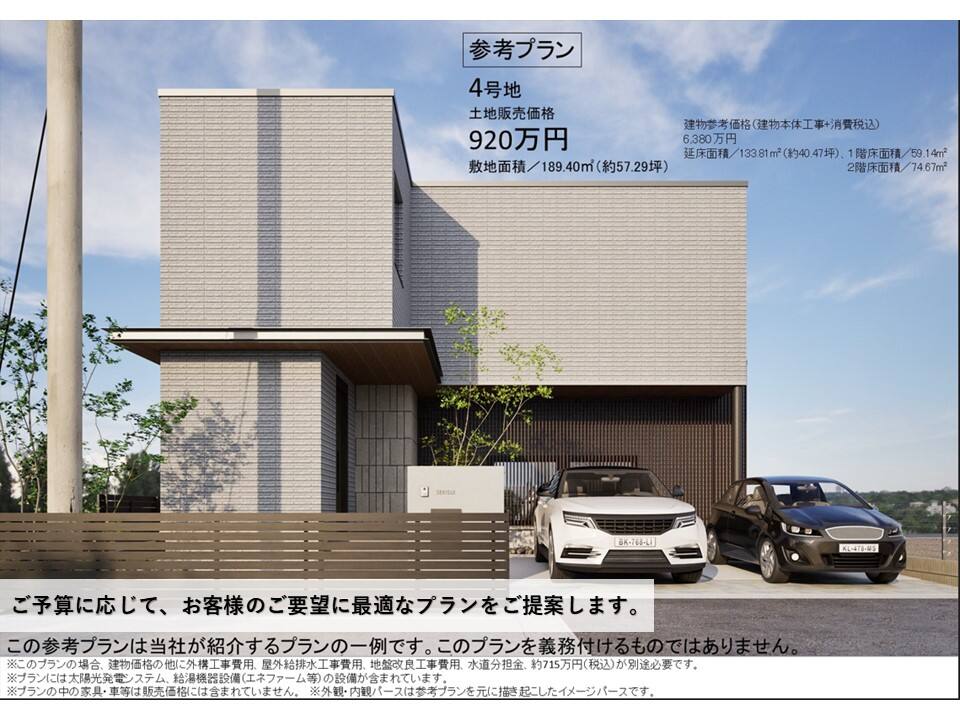 4号地にて注文住宅を建てた場合の参考プランです。※建売の販売ではありません。