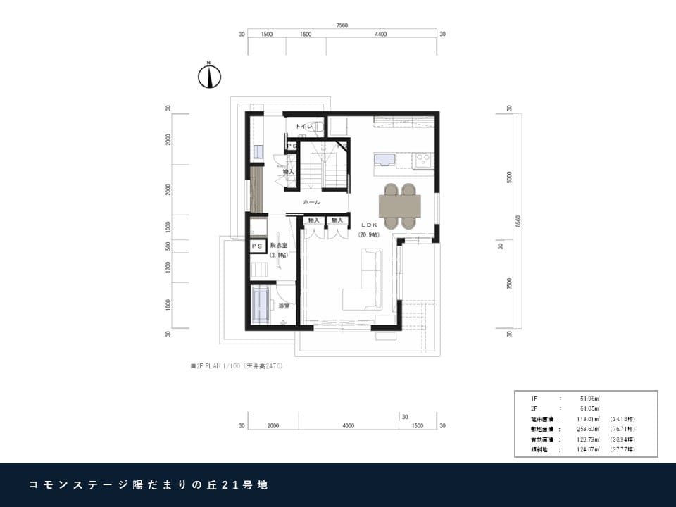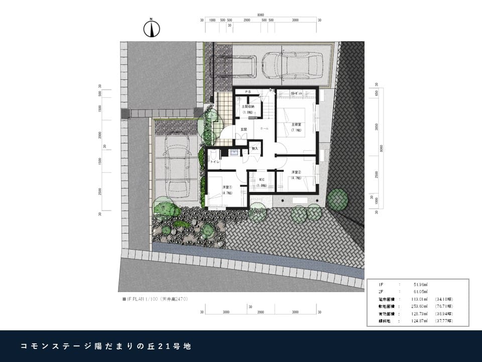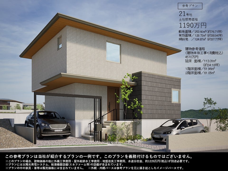 21号地にて注文住宅を建てた場合の参考プランです。※建売の販売ではありません。