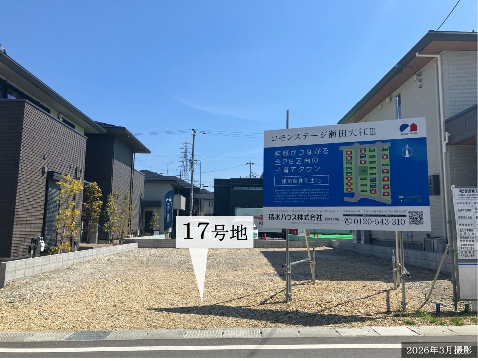 【17号地】形が整っているため、敷地全体を有効活用することができます。2階リビングなど、プライバシーに配慮したプランのご提案も可能です。ご希望をお聞かせください。/2026年3月撮影