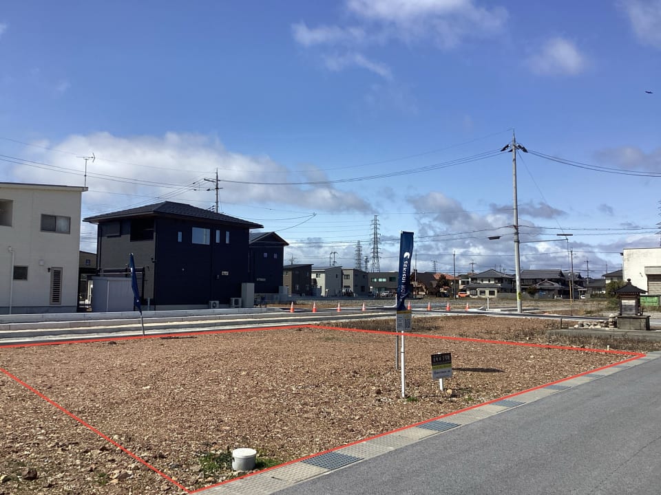 【1号地】東向きの整形地です。前面道路との段差がほぼないため、車やベビーカーを利用する際も出し入れがスムーズに行えます。/2026年3月撮影