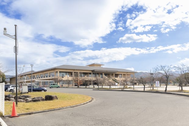 スクエア型に作られた校舎が、花壇・テラスのある中庭を囲むように配置されています。詩の暗唱やスピーチ活動など、特色ある教育が行われています。