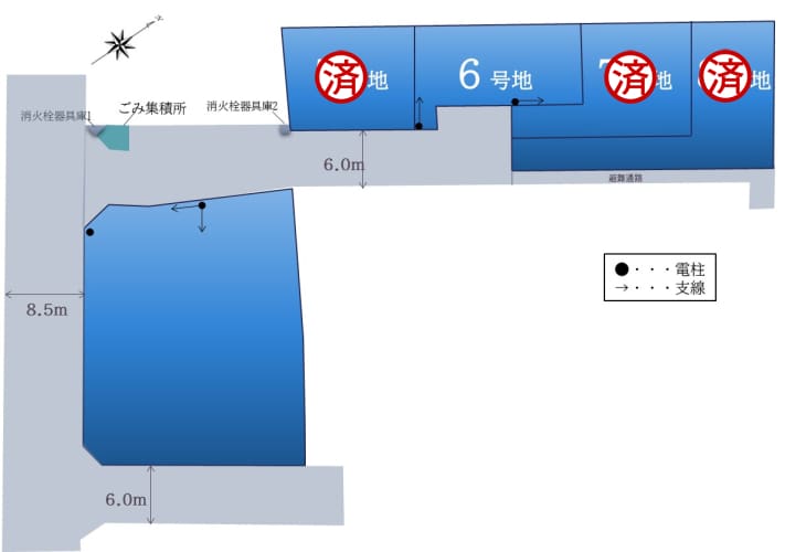 分譲地内の道路は幅員6m以上あり、お車同士のすれ違いや駐車がスムーズに行えます。