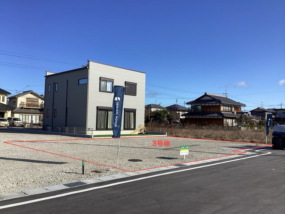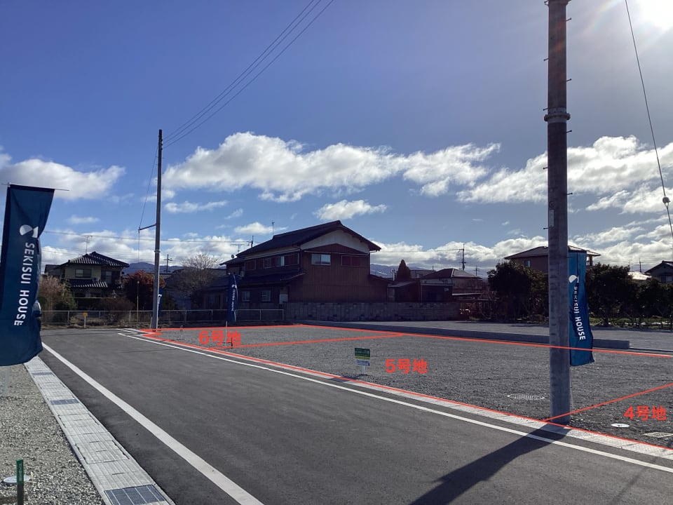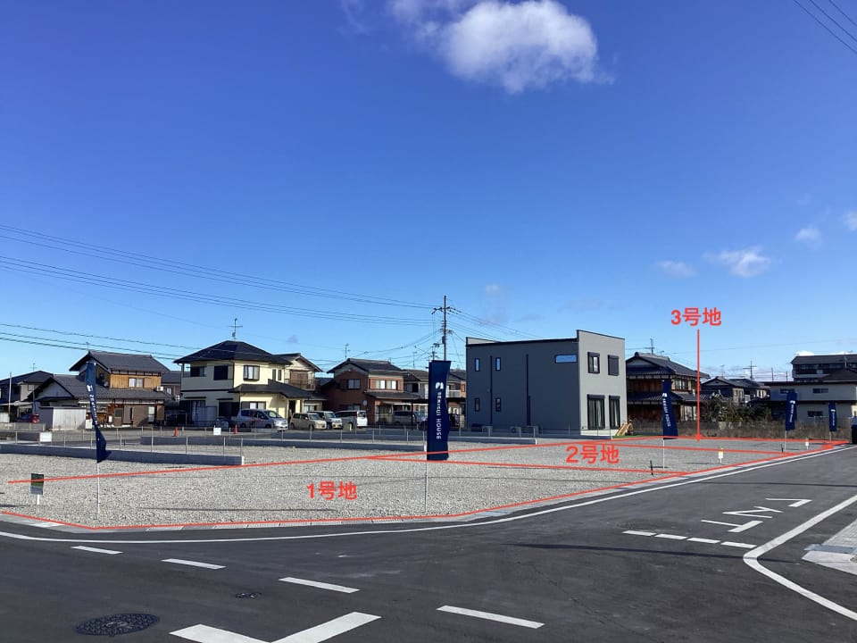 敷地面積は各区画60坪超です。前面道路の幅員は約6.0m~8.0m、お車の出入庫もスムーズに行えます。分譲地内道路は住人以外の人や車の通行が少なく、安全面に配慮されています。/2026年3月撮影