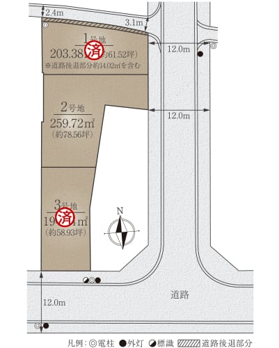 2号地はゆとりある78坪超。敷地東側に駐車スペースやお庭などを配置して、プライバシーの守られやすい敷地奥部分に住居スペースを設けることが可能です。/2025年8月撮影