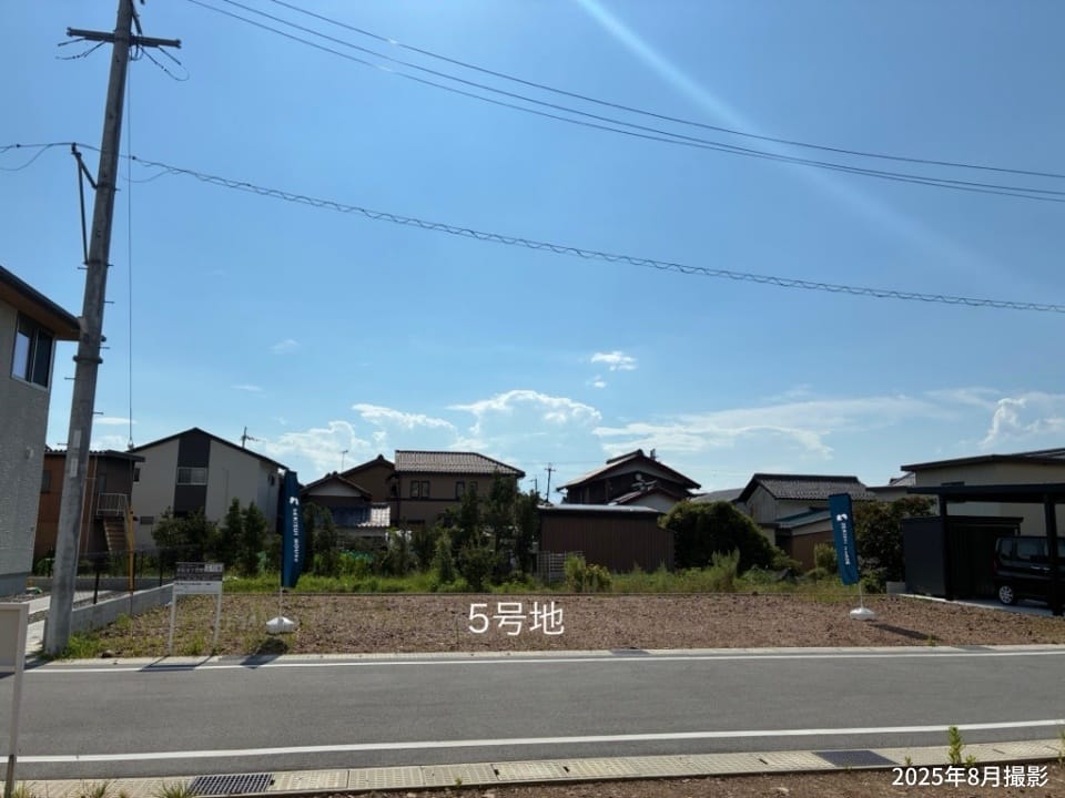 【5号地】55坪超のゆとりある整形地につき、間取りの選択肢が広がります。家族構成やライフスタイルに合わせた快適な住まいをご提案いたします。/2025年8月撮影