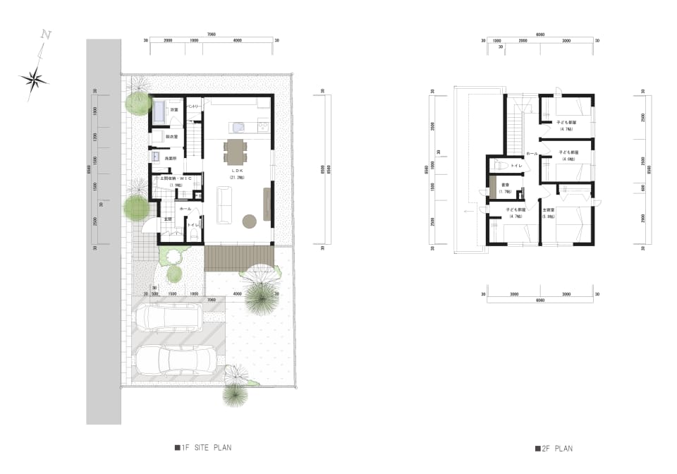 プラン内の家具・家電・小物・車などは、建物参考価格には含まれておりません。植栽の様子は、成長した数年後のイメージです。