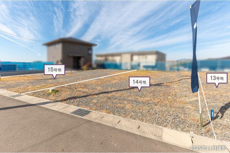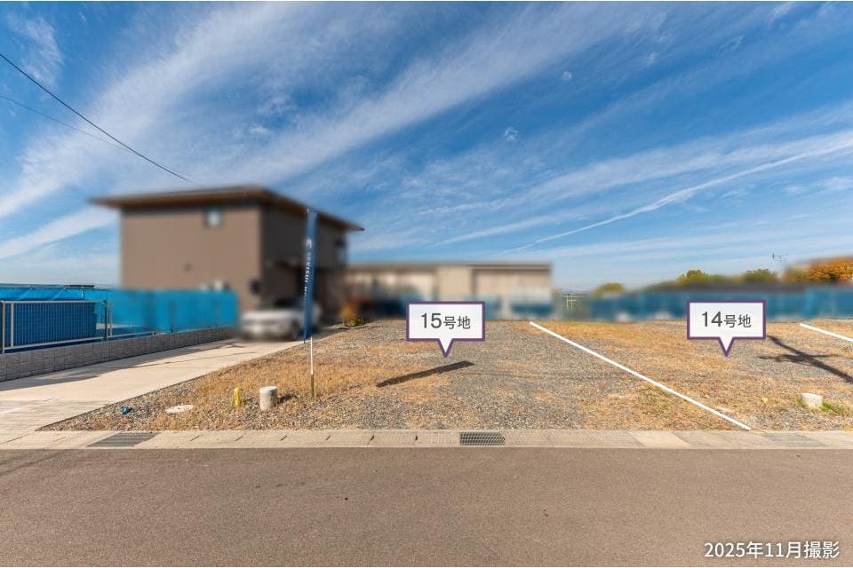 【15号地】敷地面積は約46.05坪。奥行きがある土地のため、キッチンからリビングを見渡せる縦長のLDKもご検討いただけます。/2025年11月撮影