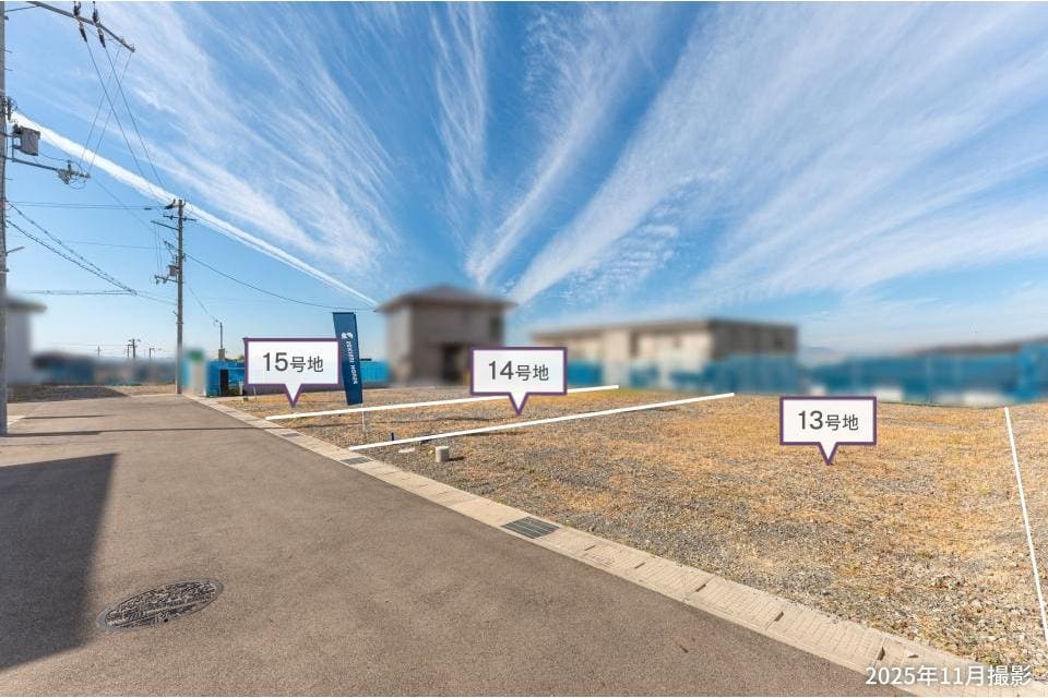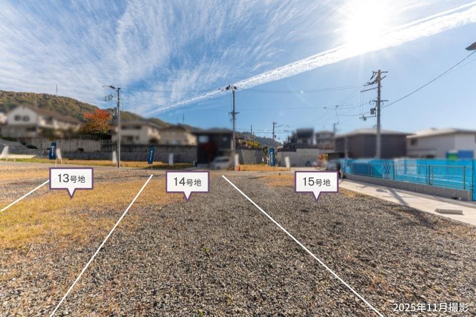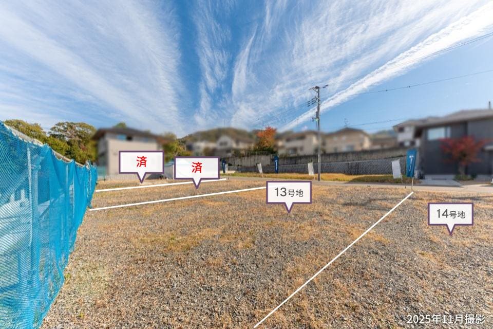 【13号地】敷地面積は約45.98坪。広々としたLDKやお庭、仕事や趣味が捗る書斎など、ご家族皆様が思い描く理想の住まいをお聞かせください。/2025年11月撮影