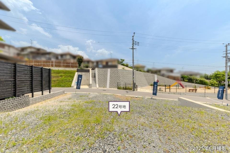 【22号地】敷地敷地面積は約40.49坪。隣地と高低差があるため、採光や通風に配慮することができます。※将来にわたり採光・通風を保証するものではありません。/2025年6月撮影