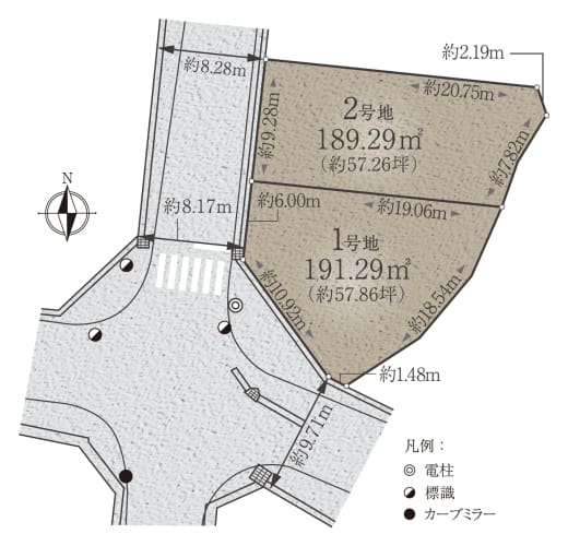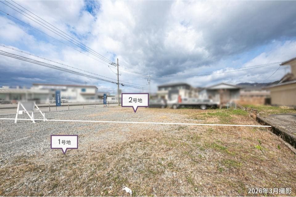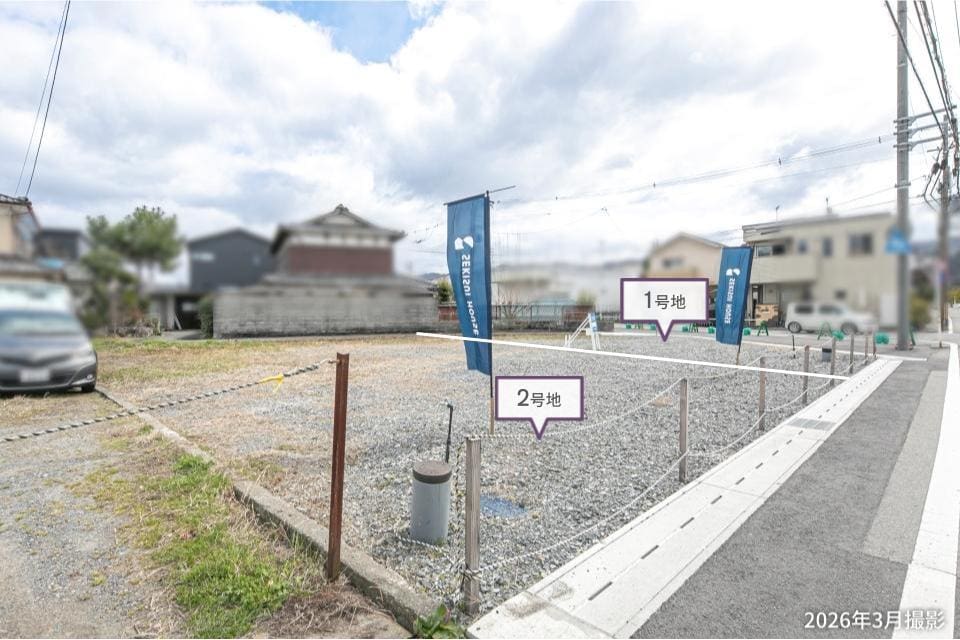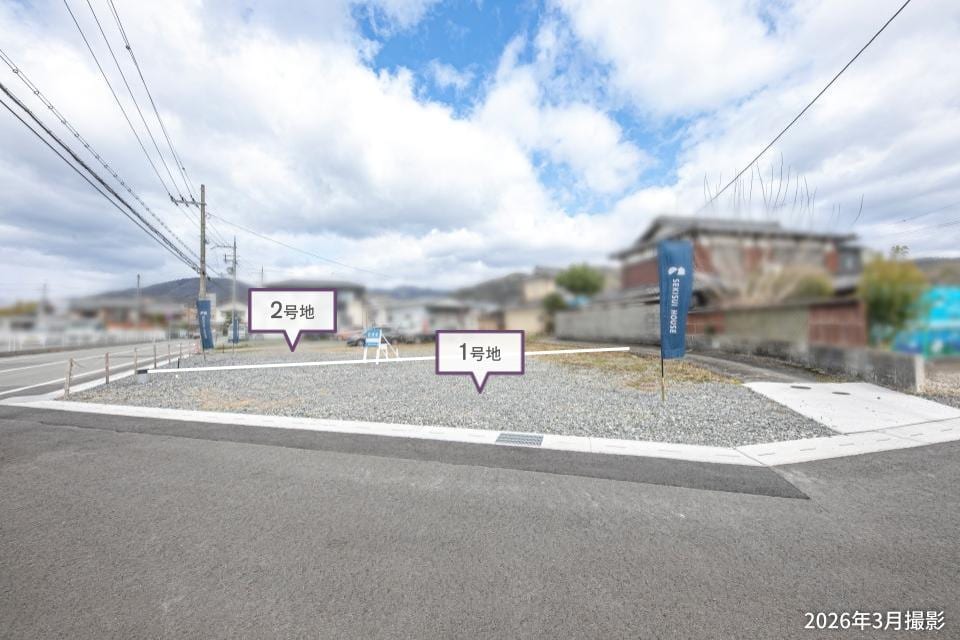 【1号地】敷地面積は約57.86坪。ゆとりある広さを活かし、多様なプランをご検討いただけます。ご家族皆様が思い描く理想の住まいをぜひお聞かせください。/2026年3月撮影