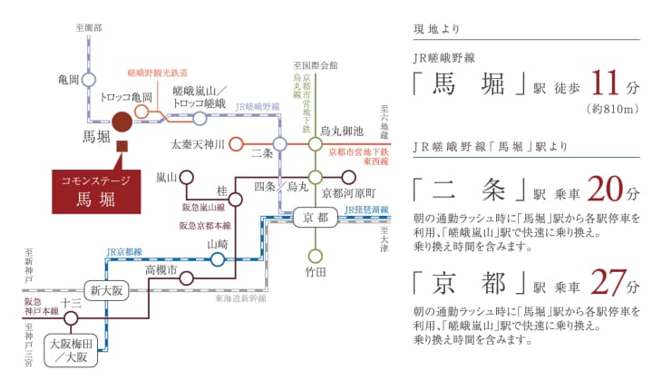 JR嵯峨野線「馬堀」駅(徒歩11分/約810m)から、27分で「京都」駅へアクセス可能。