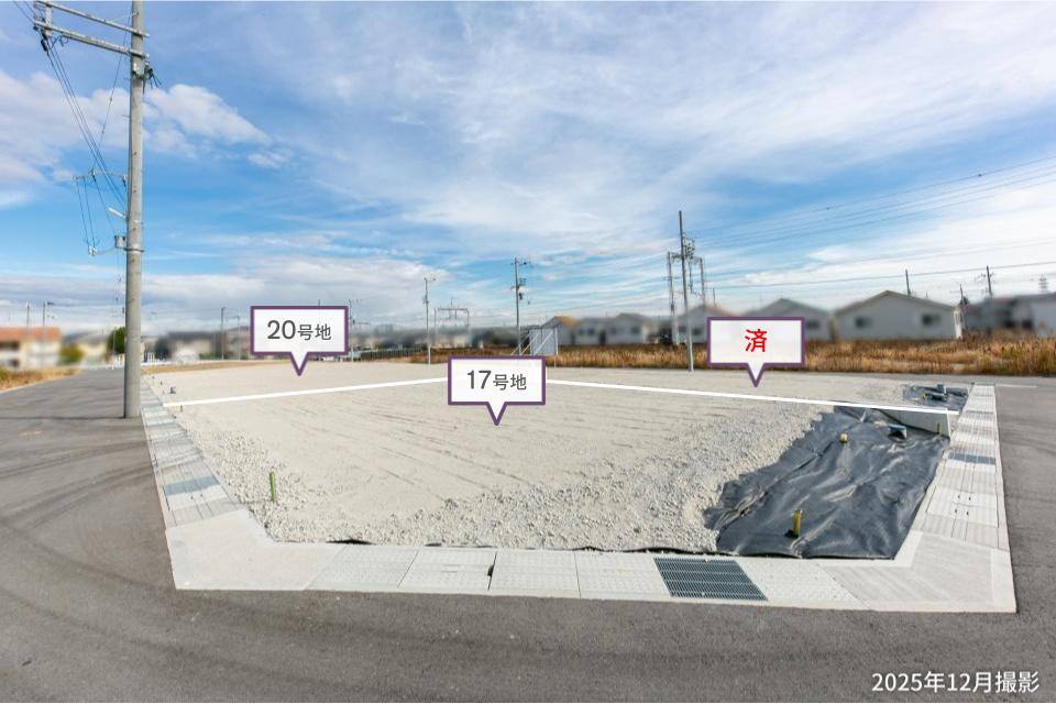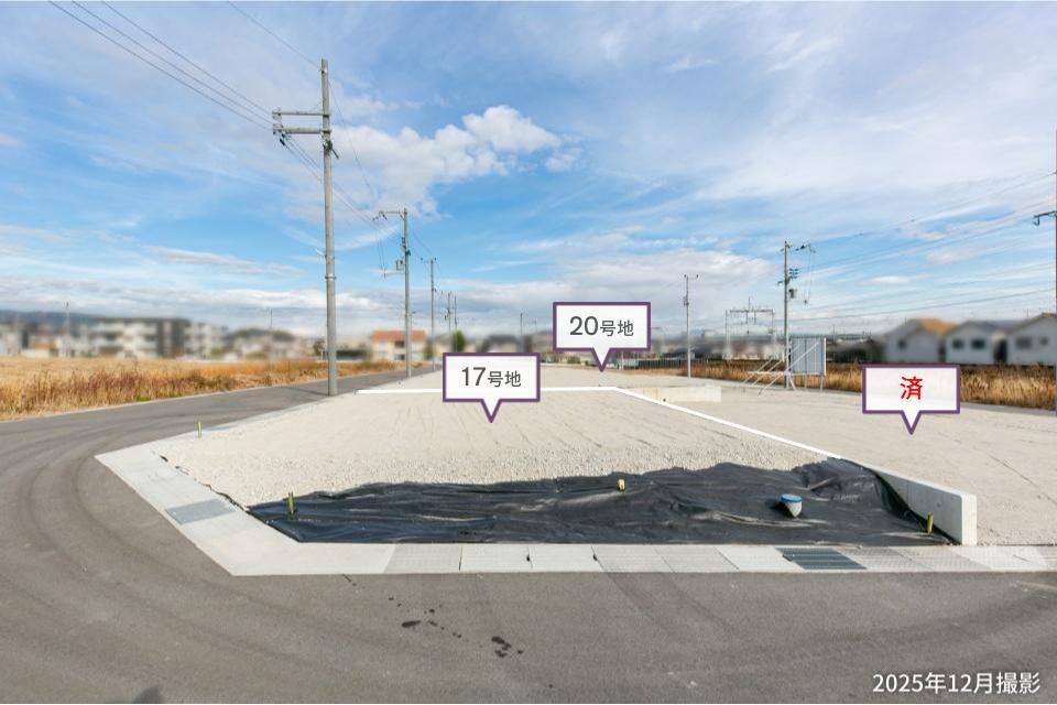 【17号地】敷地面積は約30.94坪。2方向が開けた区画のため、玄関配置や駐車スペースなど、プランニングの選択肢が広がります。/2025年12月撮影