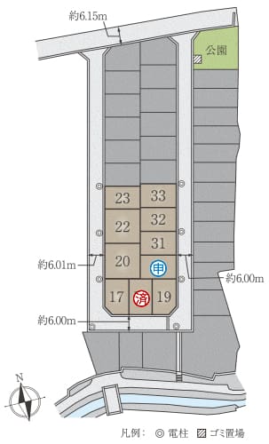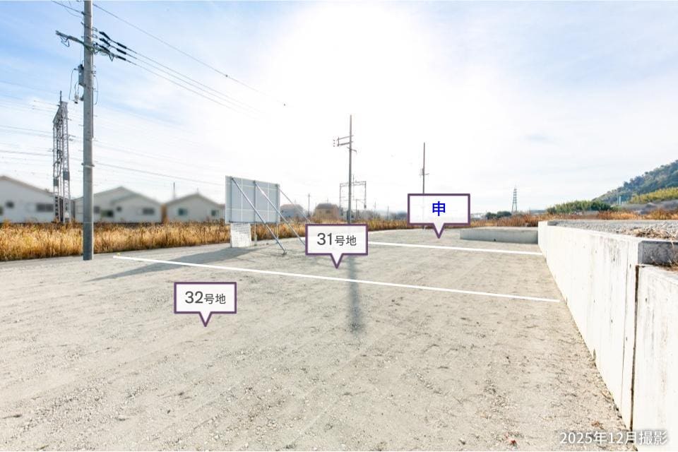 【32号地】敷地面積は約31.21坪。土地の広さや方角、価格など、それぞれ特徴の異なる区画からライフスタイルに合わせてお選びいただけます。ぜひ現地をご見学ください。/2025年12月撮影