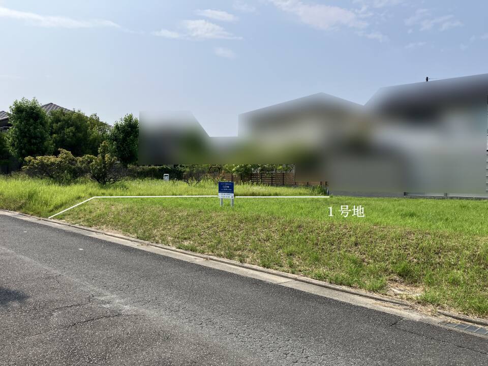 1号地を前面道路より望んだ写真です。南向きで陽当たりの良い土地です。(2025年7月撮影)
