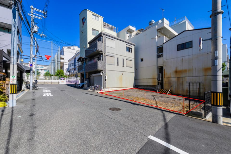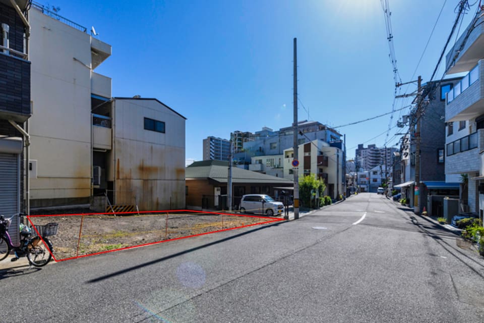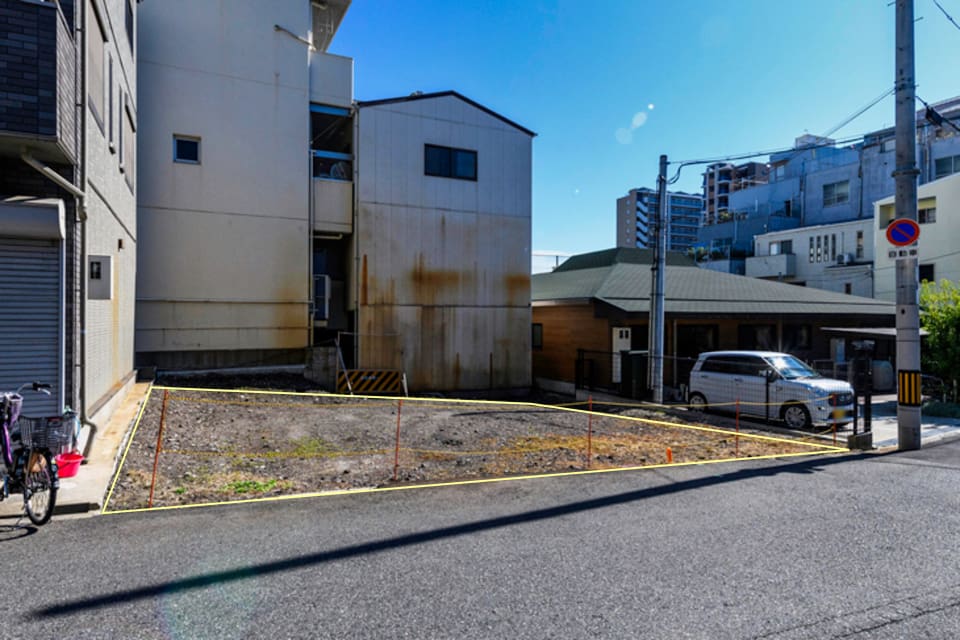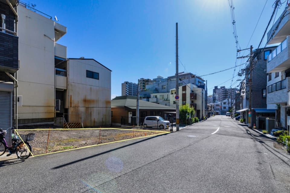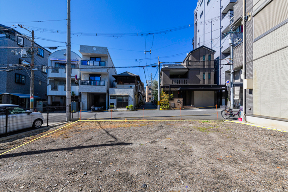 落ち着いた家並みが続く真法院町の一画。ライフスタイルに合わせて、3階建て住宅も建築可能です。敷地形状を有効に活かして、光と風を取り込み、