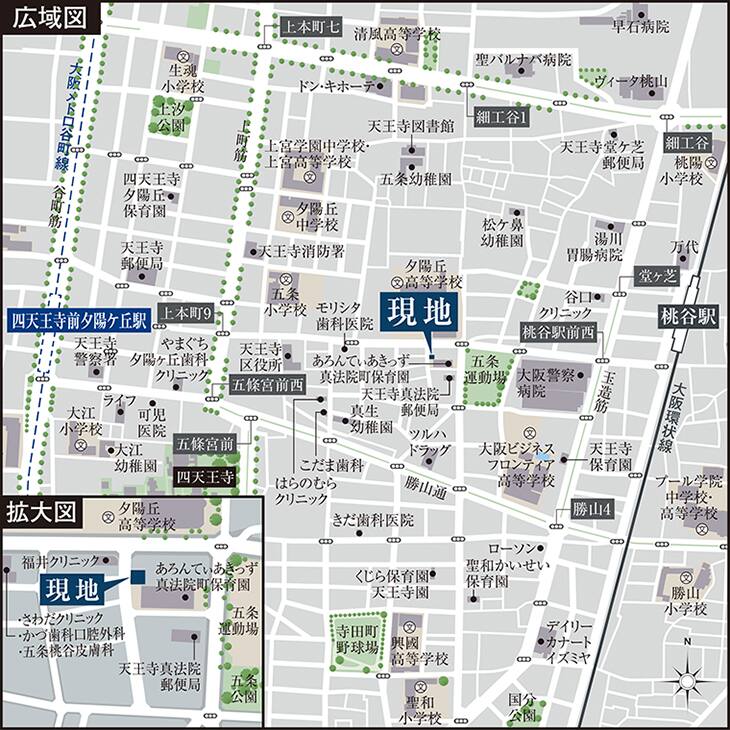 上町台地の歴史の趣と風格ある家並みが続く「真法院町」。2路線の利便性と成熟した生活環境が暮らしを支えます。