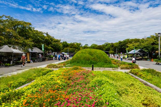 大阪城天守閣をはじめとする歴史建造物を有するほか、桜を楽しめる西の丸庭園や、四季折々の花を楽しめるスポットが充実。ジョギングコースとしても有名です。