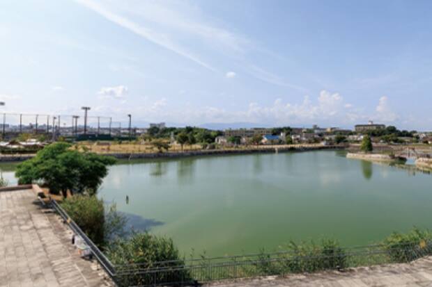 原池公園内に整備された、小さなお子様も安心して遊べる遊具のある広場。公園内にはトイレや駐車場が整備されているので、のんびりと外遊びを楽しむことができます。