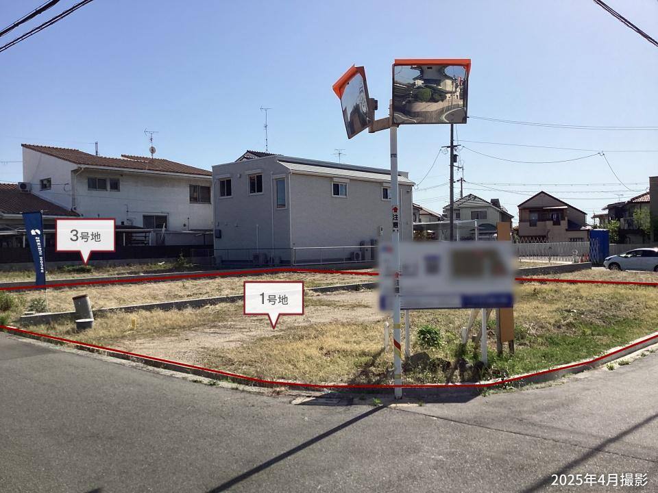 周囲は低層の住宅が集まる穏やかな邸宅地。積水ハウスの「邸別自由設計」で、理想の住まいをカタチにします。※1号地宅地内のコンクリートブロックは引渡しまでに撤去予定です。/2025年4月撮影