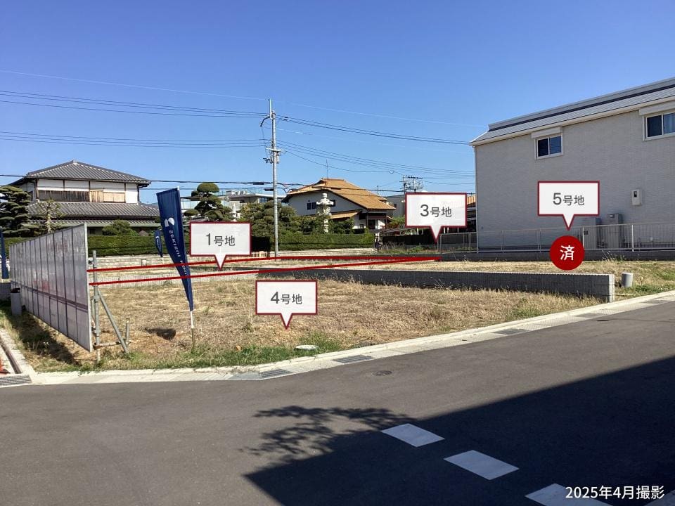 周囲は低層の住宅が集まる穏やかな邸宅地。積水ハウスの「邸別自由設計」で、理想の住まいをカタチにします。※1号地宅地内のコンクリートブロックは引渡しまでに撤去予定です。/2025年4月撮影