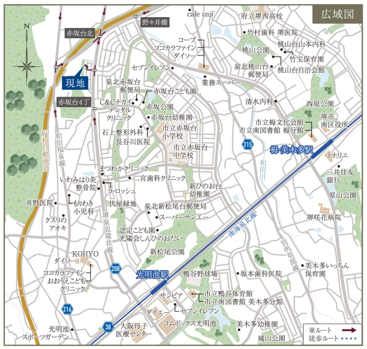 徒歩7分の「赤坂台5丁」停留所から「光明池」駅へ乗車12分。悪天候時も快適に通勤できます。