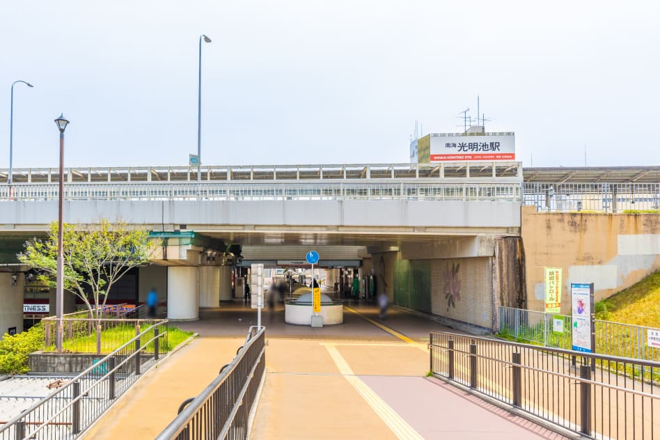 - 南海泉北線「光明池」駅まで徒歩28分(約2200m)。特急泉北ライナー・区間急行が利用可能、各方面へスムーズにアクセスできます。構内にエレベーターが設置されているため、ベビーカーで利用する際も移動しやすいです。