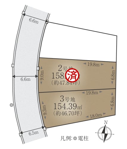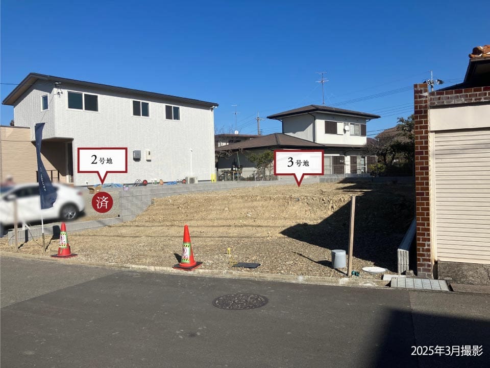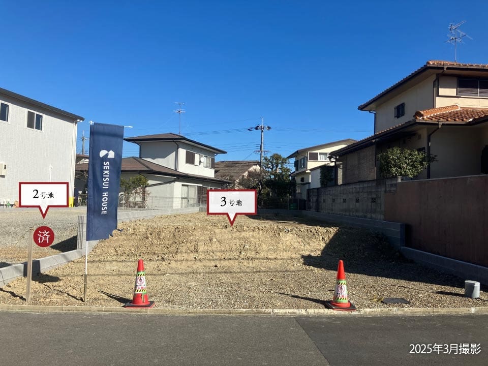 西向きの分譲地。46坪超のゆったりとした敷地のため、プランの幅が広がります。ご家族が描く理想の暮らしをお聞かせください。/2025年3月撮影