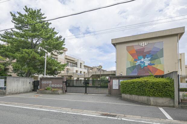 1947年開校の歴史ある中学校。校舎内はバリアフリーが整備されています。お子様が負担なく通学できる距離にあり、朝の時間や放課後にゆとりをもつことができます。
