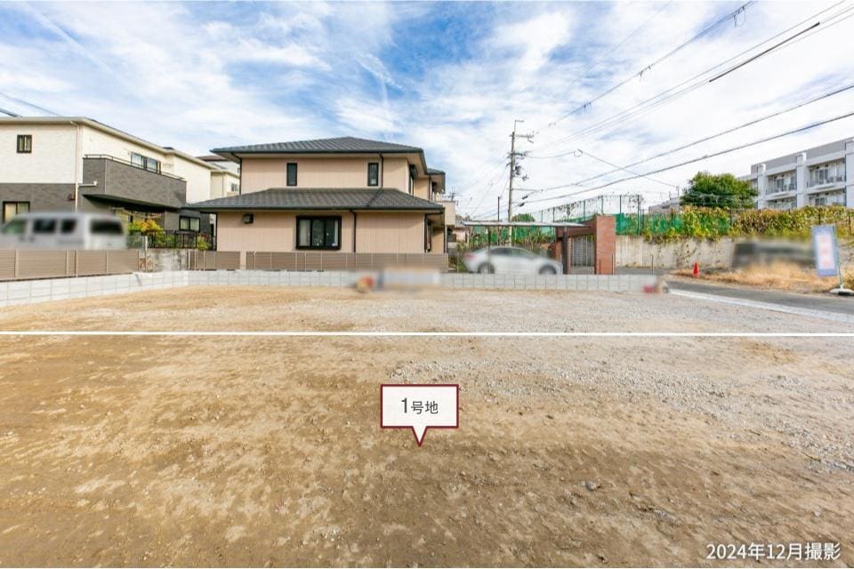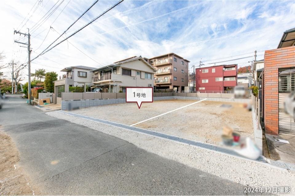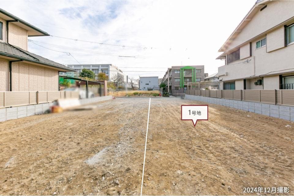 奥行きのある土地を分譲中です。前面道路からの視線が気になりにくい、プライバシーに配慮した住まいづくりが叶います。/2024年12月撮影