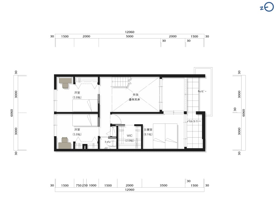 【2号地参考プラン/2階平面図】
