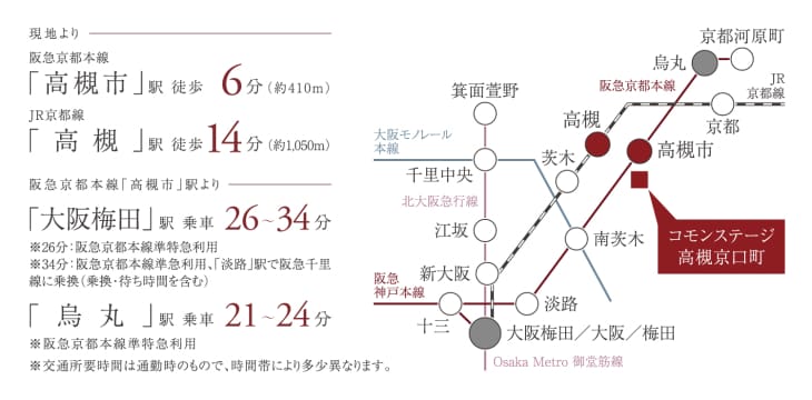 阪急京都本線「高槻市」駅から「大阪梅田」駅・「烏丸」駅へダイレクトアクセスが可能。