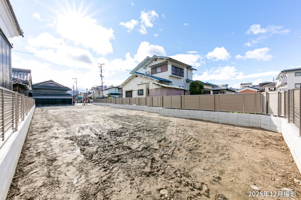 敷地面積約91.72坪のゆとりある敷地です。お庭を配置して、ガーデニングや家庭菜園などもお楽しみいただけます。/2025年12月撮影
