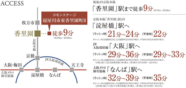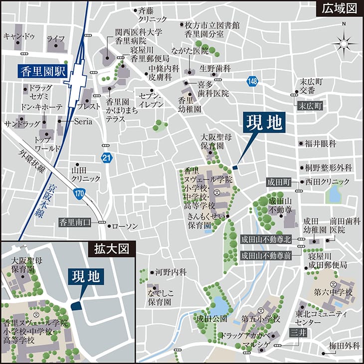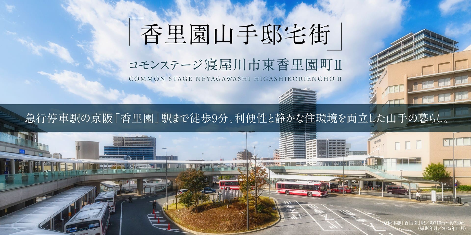 京阪「香里園」駅へ徒歩9分。緑豊かな山手邸宅地。
