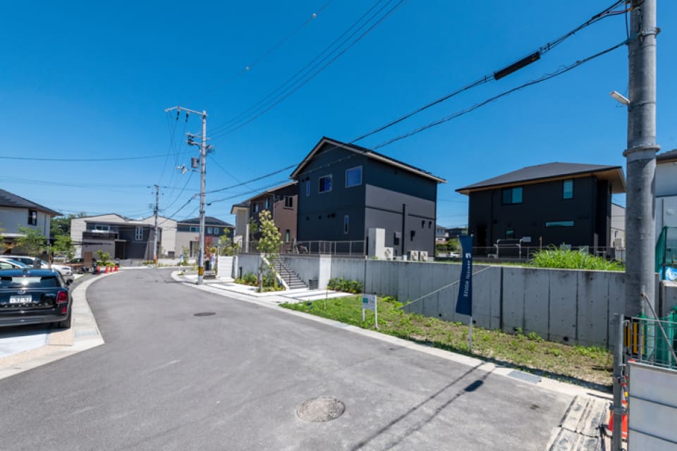6mの前面道路は車の出入りも余裕のある広さ。車のすれ違い時も心配ありません。
