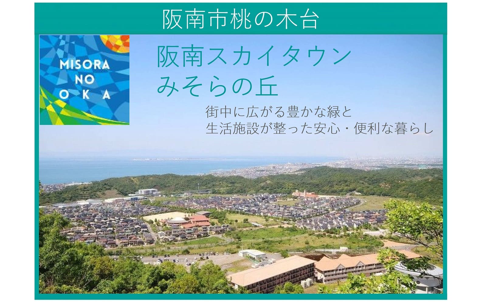 阪南スカイタウン「みそらの丘」は、幼稚園、小・中学校の教育施設と買い物施設を結ぶエリアに位置する立地にあります。 あふれる自然とともに、安心で便利な暮らしをお届けします。