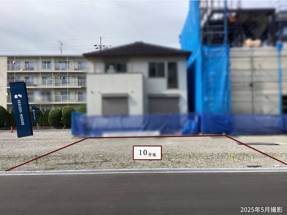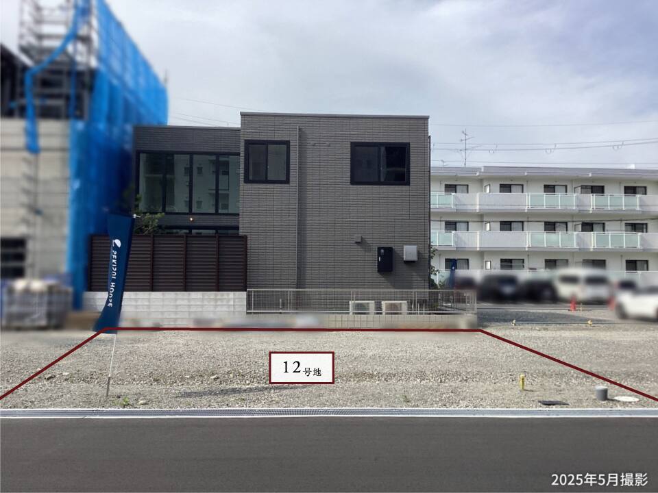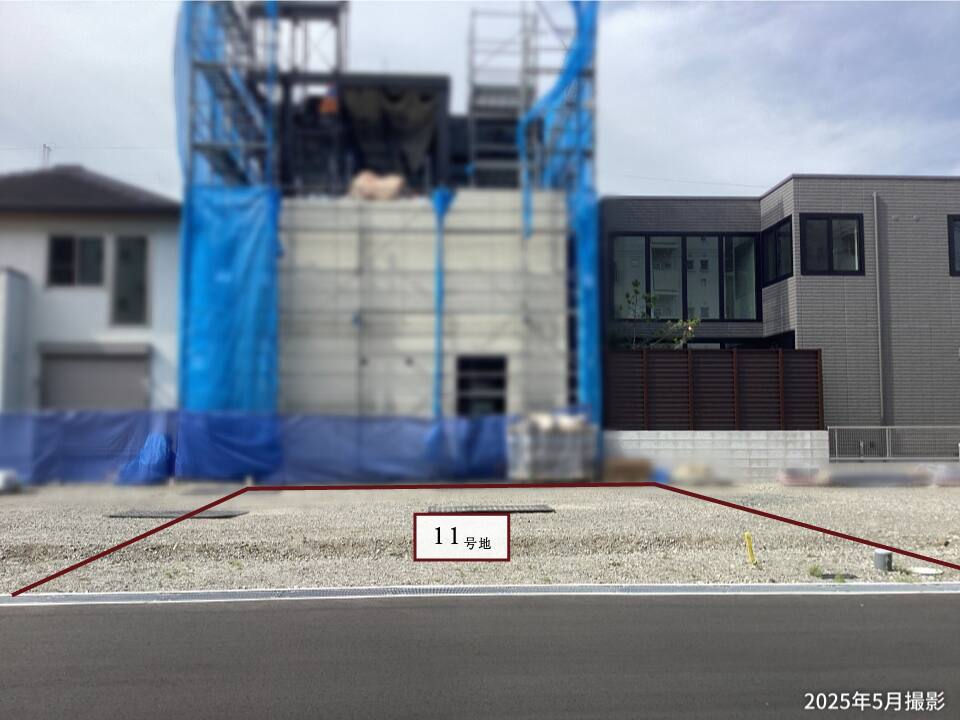 【9号地/約30.31坪】9~12号地は南向きです。前面道路の幅員は約6.7~6.8mあるので、向かいの建物と距離を保ち、ゆったりと寛ぐことができそうです。/2025年5月撮影
