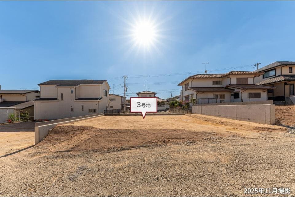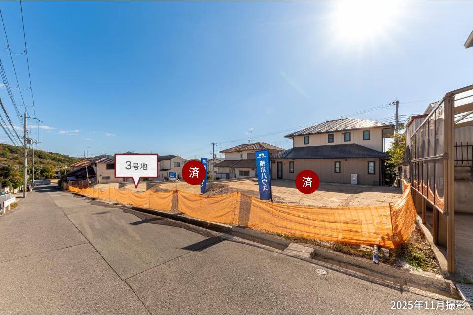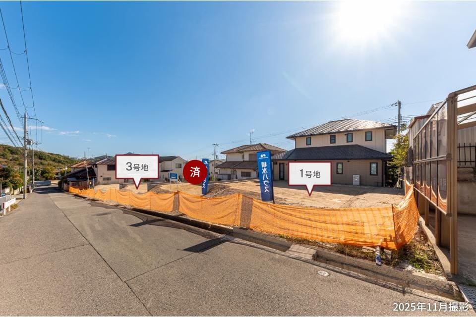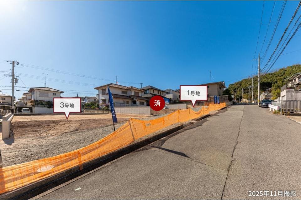 敷地面積57坪超。多彩なプランをご検討いただける整形地です。ご家族皆様が思い描く理想の住まいをお聞かせください。/2025年11月撮影