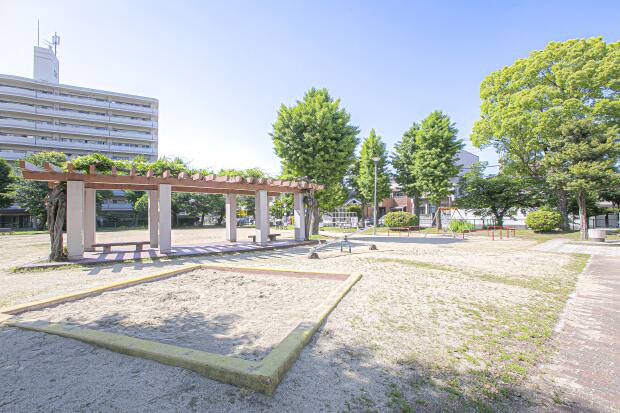 ジャグルジムやブランコ、シーソーなどが設置されている公園です。ベンチもあり、お子様が元気に遊んでいる様子を座りながら見守ることができます。